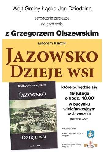 19 lutego o godz. 18 w budynku wielofunkcyjnym w Jazowsku (remiza OSP) odbędzie się spotkanie z Grzegorzem Olszewskim, autorem książki: „Jazowsko.Dzieje wsi”. Grzegorz Olszewski – absolwent historii na Uniwersytecie Jagiellońskim, członek Polskiego Towarzystwa Historycznego, a od stycznia 2011 r. członek Zarządu nowosądeckiego oddziału PTH. Autor książek, publikacji i artykułów dotyczących Ziemi Sądeckiej ukazujących się m.in. […]
