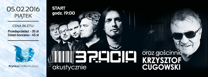 Podwójne wejściówki na jutrzejszy koncert zespołu HAPPYSAD w Pijalni-Głównej w Krynicy-Zdrój wędrują do: Małgorzata Nakonieczna Edward Kołdras Serdecznie gratulujemy! Zwycięzcy zostali poinformowani drogą mailową. Czytajcie nas uważnie, bo wkrótce pojawi się w konkurs w którym do wygrania będą wejściówki na koncert BRACIA i KRZYSZTOF CUGOWSKI (05.02.2016) Polub nas na Facebooku i bądź na bieżąco: Starosądeckie.info
