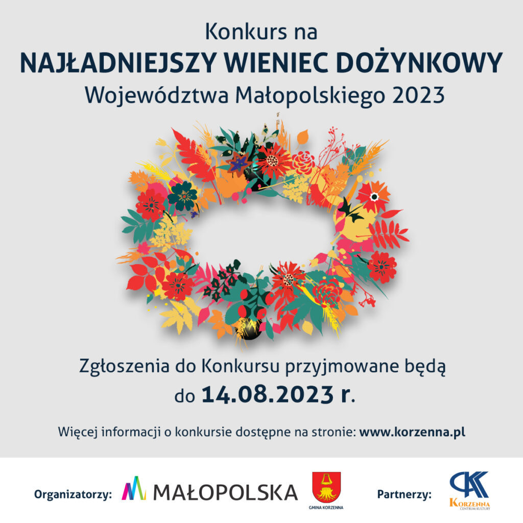 Marszałek Województwa Małopolskiego oraz Wójt Gminy Korzenna zapraszają do udziału w Konkursie na najładniejszy Wieniec Dożynkowy Województwa Małopolskiego. Celem konkursu jest kultywowanie i ukazywanie piękna tradycji zakończenia prac polowych, okazanie uznania dla rolników za ich trud, a także pokazanie szacunku dla chleba i budowanie tożsamości regionalnej. Zwycięzca zostanie wyłoniony 20 sierpnia 2023r., podczas Dożynek Wojewódzkich […]