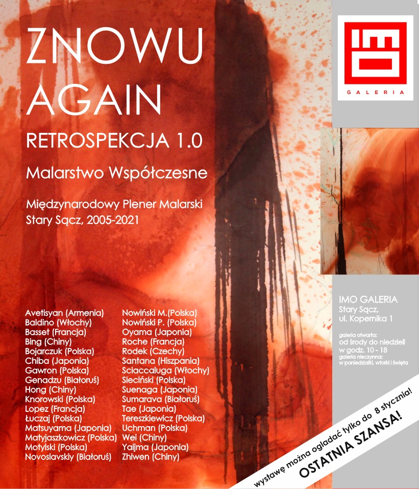 To już dosłownie ostatnie dni, kiedy w galerii IMO w Starym Sączu można zobaczyć wystawę pt. „Znowu”, na której zostały zaprezentowane prace 32 autorów z 10 krajów powstałe podczas Międzynarodowych Plenerów Malarskich w Starym Sączu i plon niedawnej rezydencji artystycznej Veronika Cherednychenko z Ukrainy zebrany w sali kameralnej w formie wystawy pt. „Turoń”.Obie wystawy można zobaczyć jeszcze […]