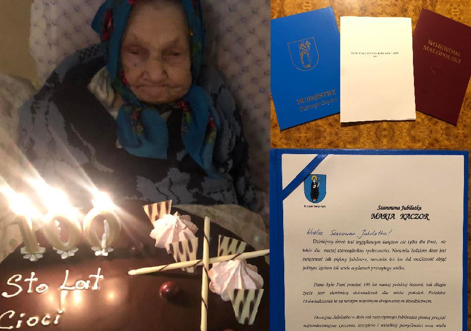 Pani Maria Kaczor z Gabonia -Praczki (gmina Stary Sącz) skończyła właśnie 100 lat. Przyszła na świat 21 stycznia 1922 roku i od urodzenia mieszka w Gaboniu -Praczce. Pani Maria jest osobą niepełnosprawną. Od urodzenia jest głucha i niema. – –Pomimo swojej niepełnosprawności ciocia cieszy się dobrym zdrowiem. Kocha słodycze i to jest jej największa słabość […]