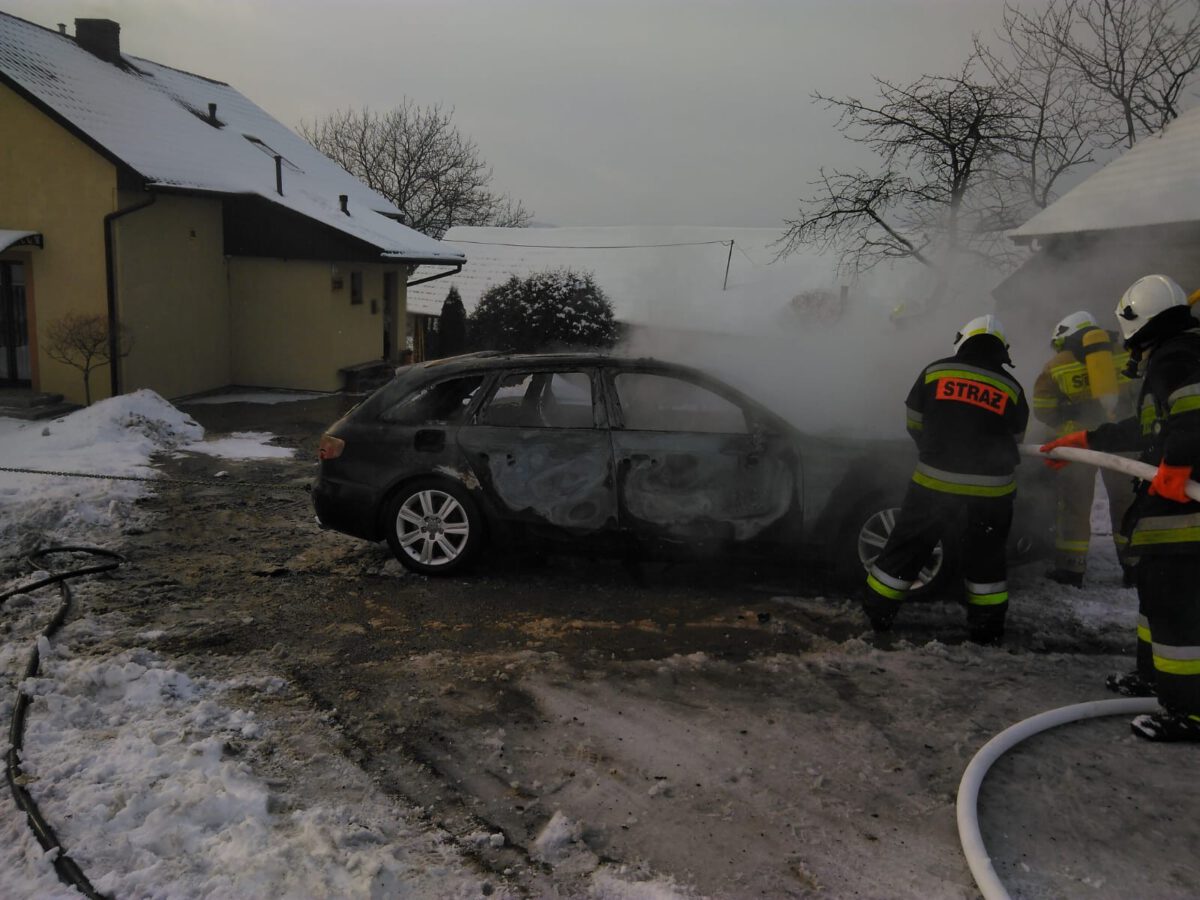 Pożar osobówki w Łącku
