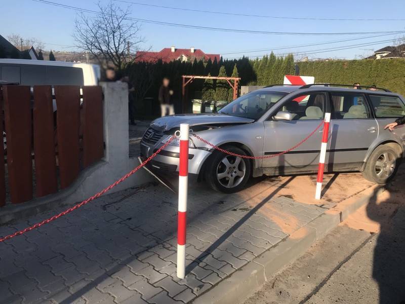 Chełmiec. Samochód zatrzymał się na ogrodzeniu