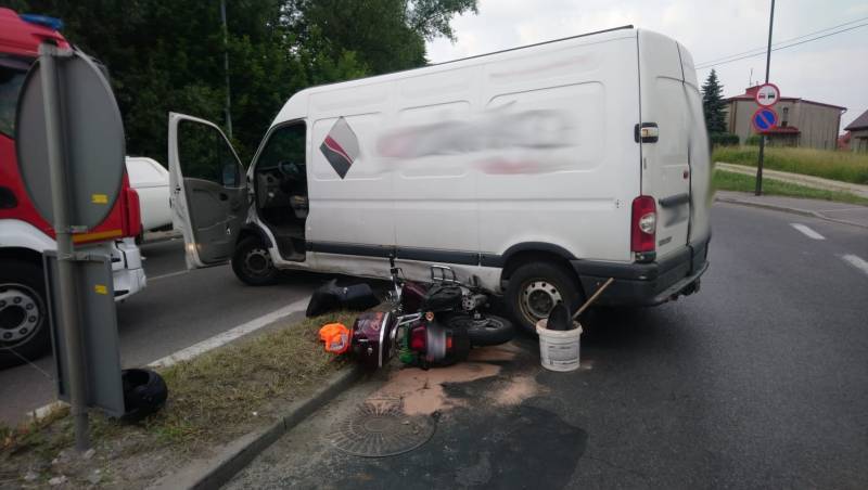 14 czerwca około godziny 8.24 służby ratunkowe wezwane zostały do wypadku na ulicy Nawojowskiej w Nowym Sączu. -Doszło tam do zderzenia samochodu dostawczego i motocykla. Pojazdami podróżowali sami kierujący -relacjonują strażacy – Poszkodowany został kierujący motocyklem , któremu pomocy udzieliła załoga karetki Pogotowia Ratunkowego. Kierujący motocyklem został zabrany do szpitala. PSP NS