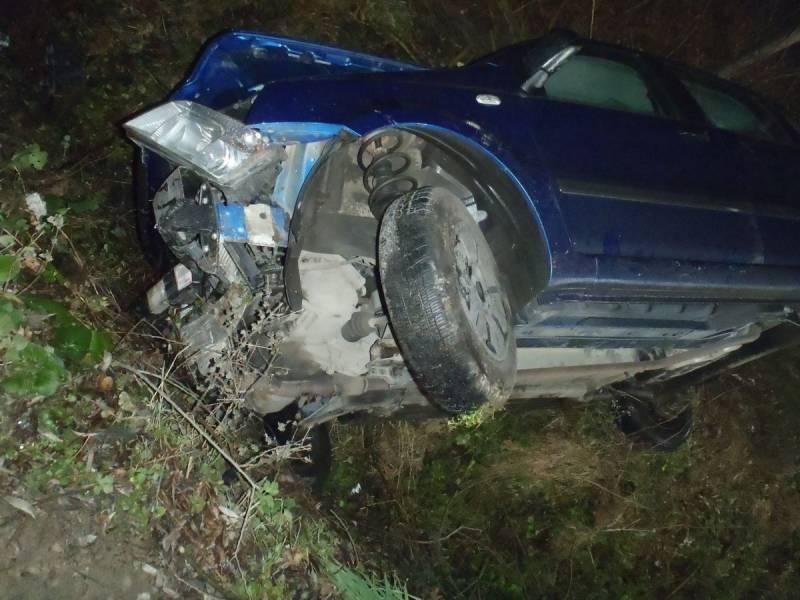 Łazy Biegonickie. Samochód osobowy wylądował w rowie. Trzy osoby w szpitalu