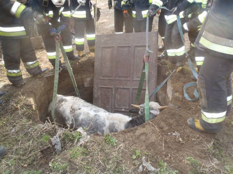Strażacy wyciągali krowę ze zbiornika