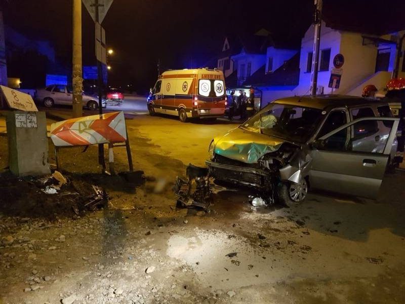 Krakowska. Samochód wypadł z drogi i uderzył w betonowy słup