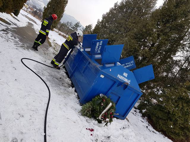 Pożar sadzy przy Miodowej i kontenera na cmentrzu. Strażacy w akcji