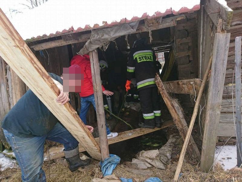 Krowa wpadła do silosu. Na ratunek ruszyli strażacy