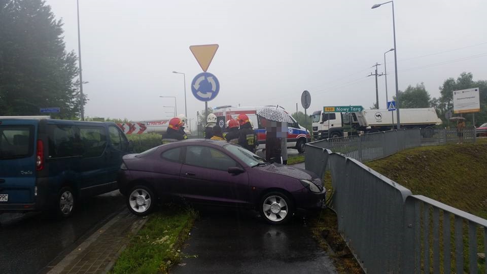 Dzisiaj (25 lipca) około godziny 11:08 na rondzie za mostem św. Kingi w Starym Sączu samochód osobowy marki Ford Puma z niewiadomych przyczyn zjechał z drogi i uderzył w barierki. Samochodem podróżowały dwie kobiety. Kierująca doznała obrażeń i została przetransportowana do sądeckiego szpitala. Na miejscu działały służby ratunkowe: OSP Stary Sącz, PSP Nowy Sącz, karetka […]