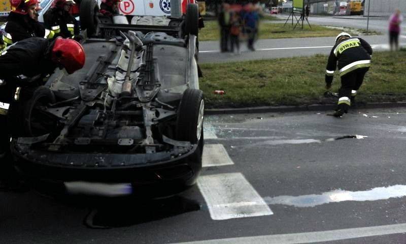 Wypadek na Piłsudskiego. Renault na dachu a kobieta w szpitalu
