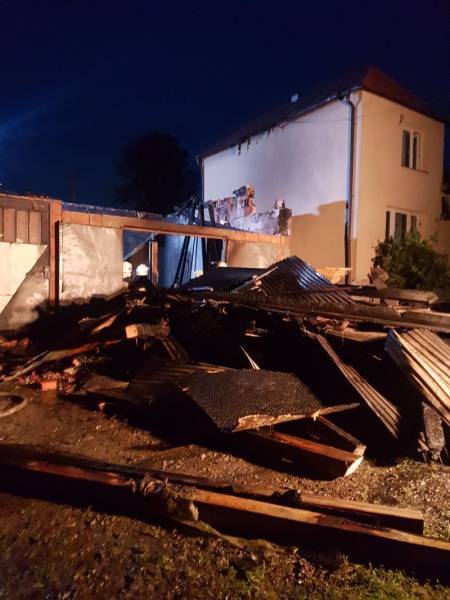 Stróże. 66 strażaków gasiło pożar garażu wraz z budynkiem gospodarczym