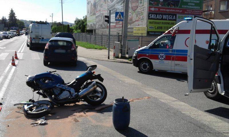Krakowska. Zderzenie osobówki i motocykla. Kto wymusił pierwszeństwo?