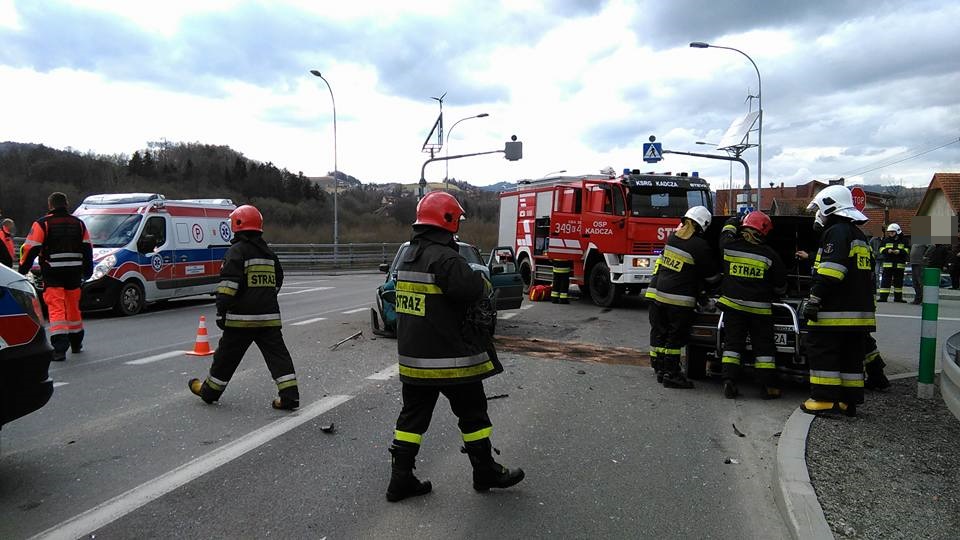 Kadcza. Stłuczka na drodze wojewódzkiej. 2 osoby w szpitalu