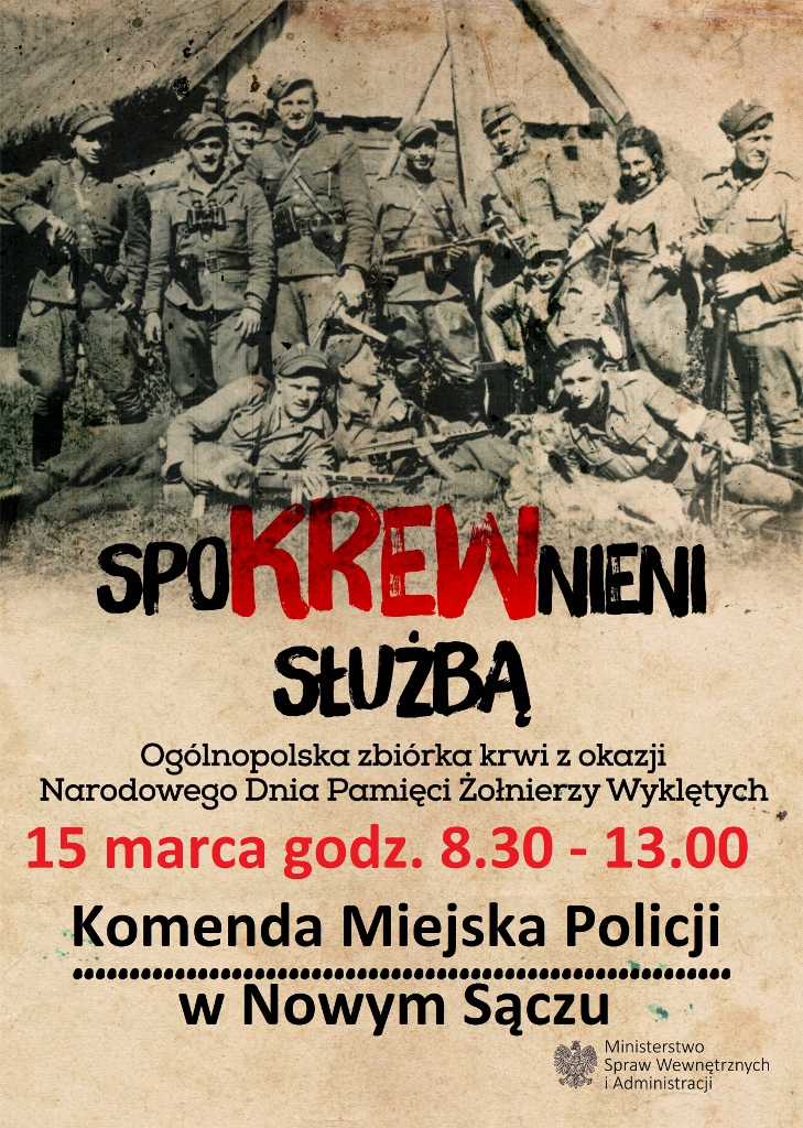 15 marca w Komendzie Miejskiej Policji w Nowym Sączu zostanie przeprowadzona ogólnopolska akcja oddawania krwi pod hasłem „spoKREWnieni służbą”. Zbiórkę objął patronatem Minister Spraw Wewnętrznych i Administracji – Mariusz Błaszczak. Krew to jedyny w swoim rodzaju dar, którego nie można wyprodukować. Pobrana krew trafi do chorych i potrzebujących ze szpitali oraz klinik naszego regionu. Zbiórka […]