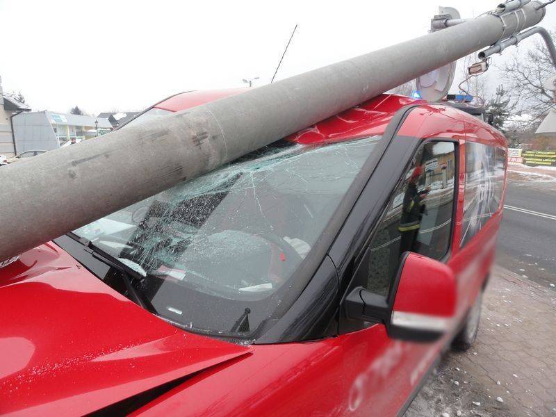 Łabowa. Samochód dostawczy uderzył w latarnię uliczną
