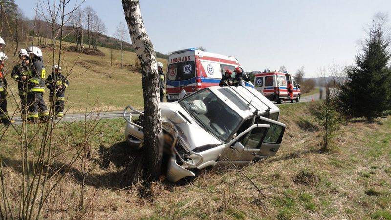 Leluchów -samochód wypadł z drogi i uderzył w drzewo