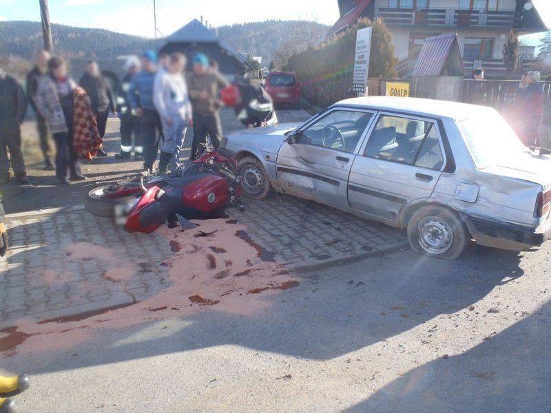 W sobotę 30 stycznia kilkanaście minut po godzinie trzynastej w Gołkowicach Górnych, doszło do czołowo bocznego zderzenia motocykla z samochodem osobowym. Oba pojazdy znajdowały się na wjeździe na prywatną posesje blokując jednocześnie jeden pas ruchu na drodze. Motocyklista został przewieziony do sądeckiego szpitala. Kierowca samochodu nie uskarżał się na żadne dolegliwości natomiast kierujący motocyklem leżał na […]