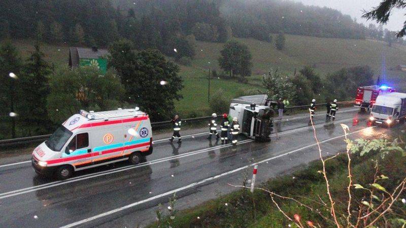 Roztoka Wielka -samochód dostawczy wywrócił się na bok