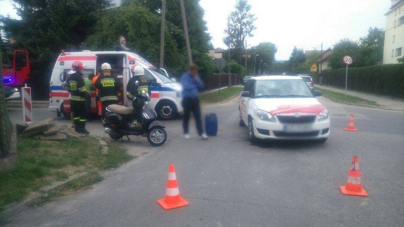 Wczoraj (25 sierpnia) na skrzyżowaniu ulicy Szymanowskiego i Darowskiej w Nowym Sączu doszło do zderzenia samochodu marki Skoda i skutera Piaggio. Karetka pogotowia ratunkowego zabrała kierującego motorowerem do szpitala. Działania strażaków polegały na zabezpieczeniu terenu działań, odłączeniu klem akumulatora w motorowerze i zasypaniu wyciekłych płynów eksploatacyjnych sorbentem. Policja prowadzi czynności wyjaśniające. PSP Nowy Sącz