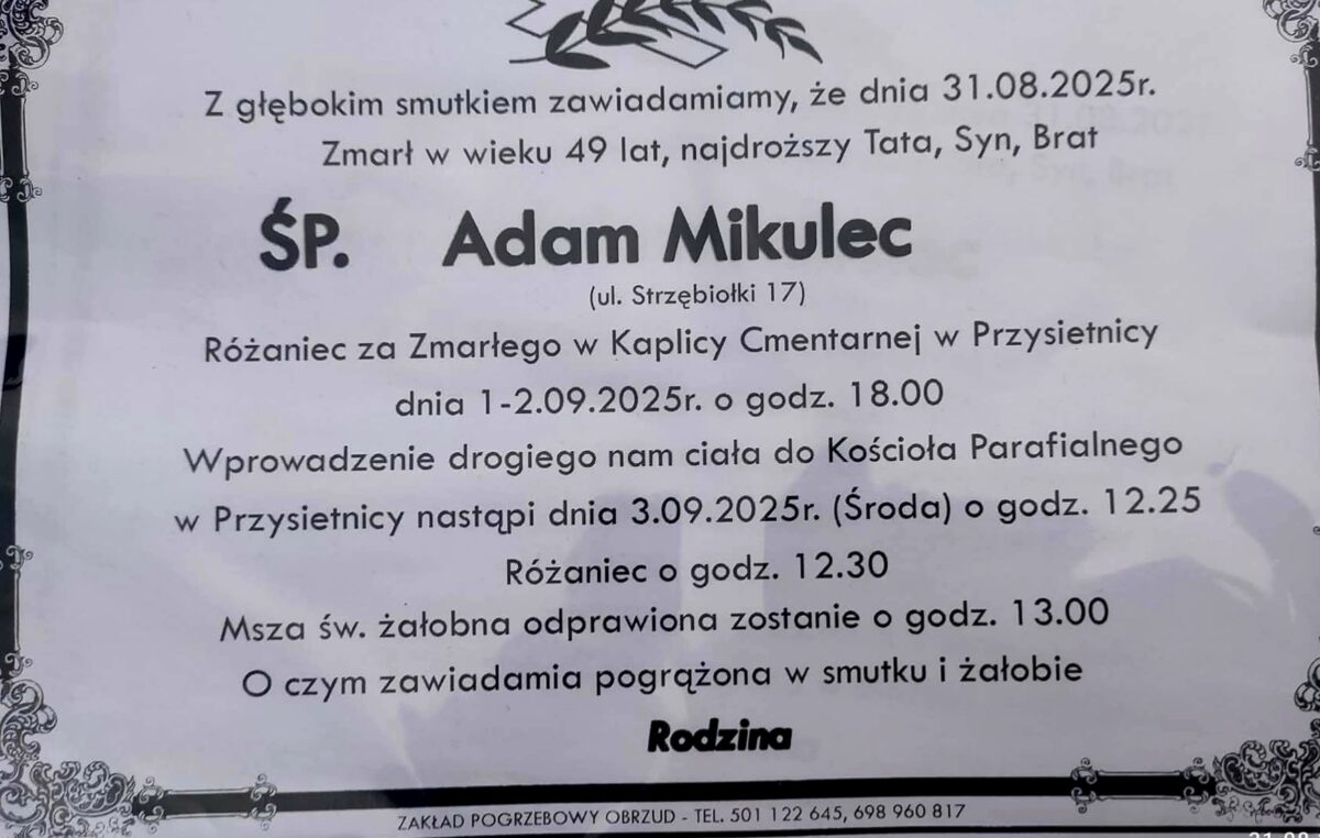 Opublikowano: 26 sierpnia, 2025 o 6:47 pm   /   Nekrologi, Z ostatniej chwili