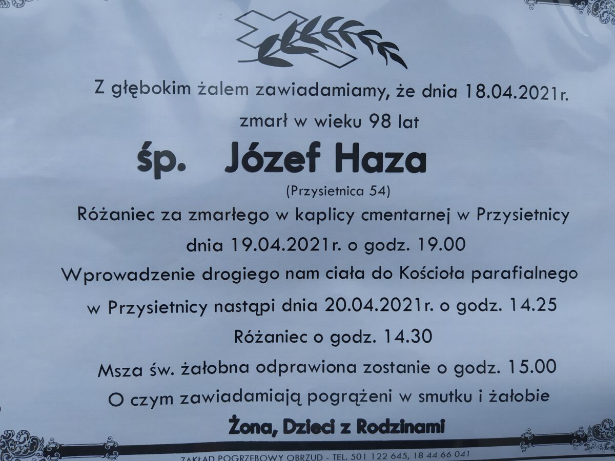 Dziś rano, w wieku 98 lat odszedł Józef Haza, więzień niemieckich obozów koncentracyjnych, ocalały z Marszu Śmierci. Był jednym z ostatnich świadków tragicznej historii drugiej wojny światowej pochodzących z Sądecczyzny. Urodził się w Przysietnicy powiat Nowy Sącz 26 marca 1923 roku. Syn Jana i Kunegundy Ogorzała, 10 stycznia 1942 roku wstąpił do Organizacji Bataliony Chłopskie na terenie […]