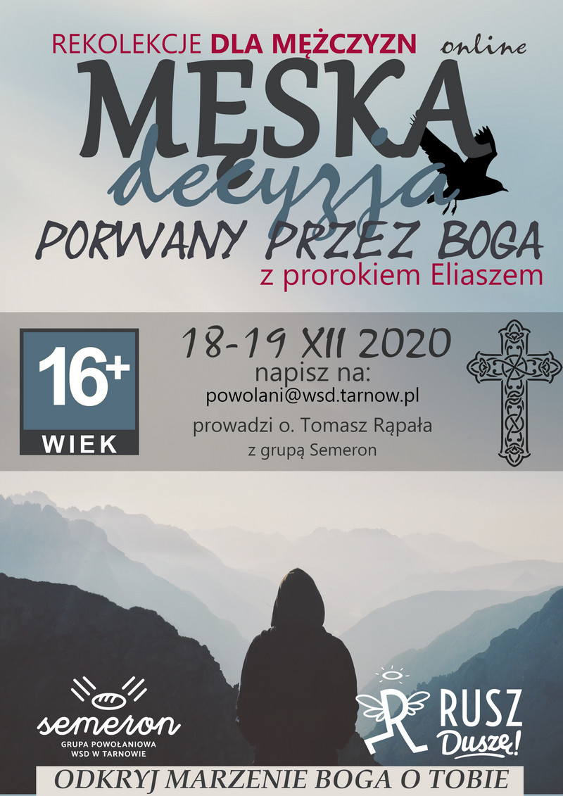 „Porwany przez Boga” to temat rekolekcji z cyklu Męska decyzja. Odbędą się one on-line w najbliższy piątek i sobotę, 18 i 19 grudnia. – Tym razem naszym przewodnikiem będzie prorok Eliasz. W świetle jego postaci będziemy chcieli zobaczyć drogę własnego życia, proces rozeznawania woli Bożej. Zapraszamy i czekamy – mówi ks. Tomasz Rąpała, ojciec duchowny […]