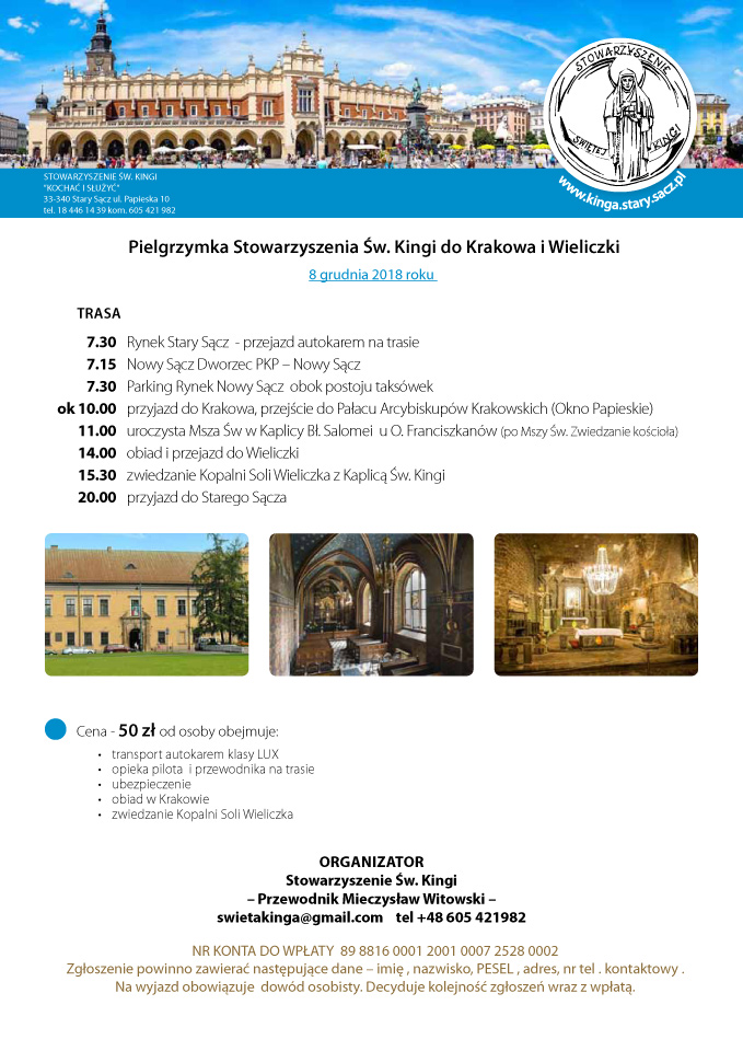 Pielgrzymka Stowarzyszenia św. Kingi do Krakowa i Wieliczki