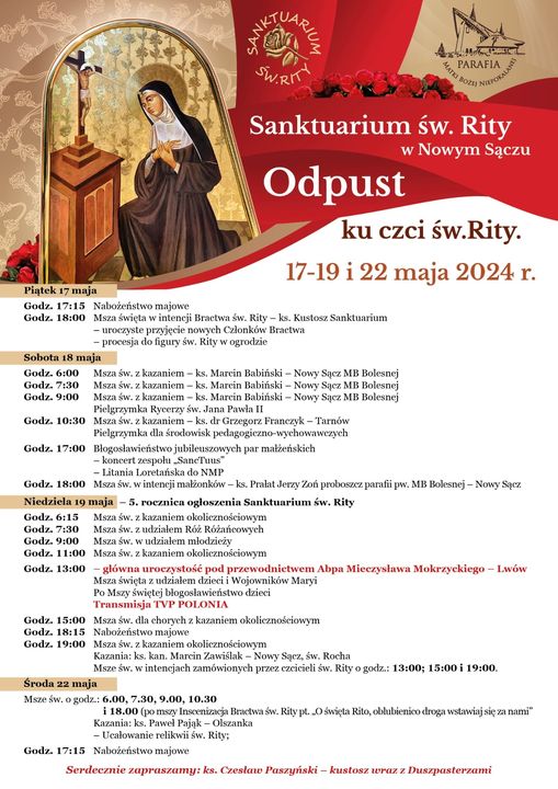 Zbliża się coroczny odpust ku czci św. Rity w Nowym Sączu.