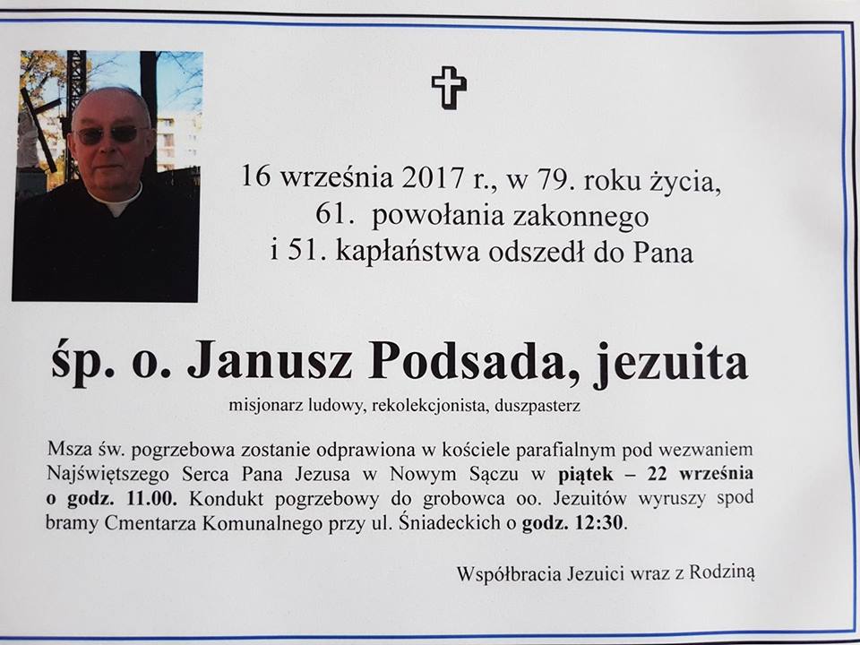 Zmarł o. Janusz Podsada z Parafii Najświętszego Serca Pana Jezusa w Nowym Sączu
