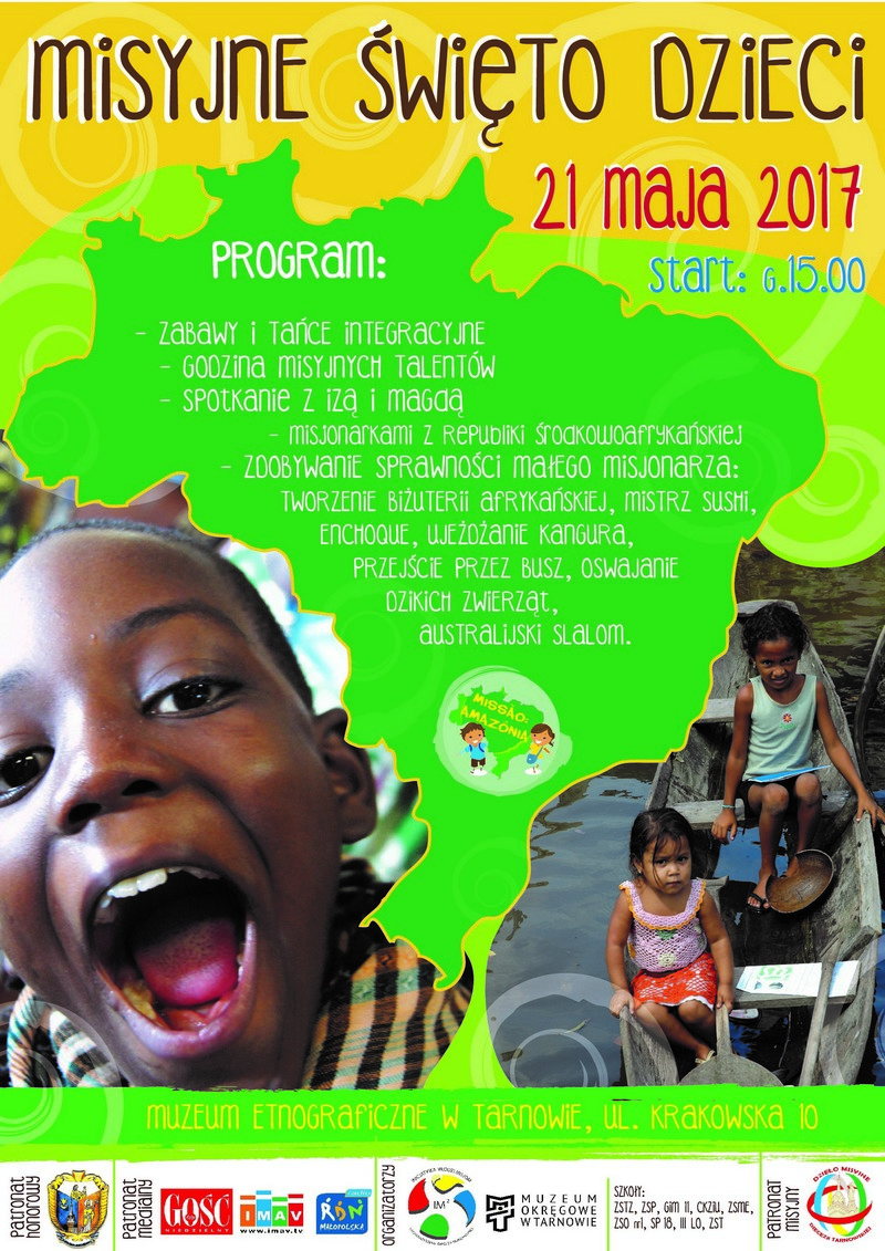 W niedzielę, 21 maja do Muzeum Etnograficznego w Tarnowie przy ul. Krakowskiej 10 zaproszone są wszystkie dzieci z Tarnowa i diecezji tarnowskiej. O godzinie 15:00 już po raz siódmy rozpocznie się Misyjne Święto Dzieci, czyli największe w okolicy świętowanie dnia dziecka w wymiarze misyjnym. „Jak co roku – dobra zabawa i mnóstwo śmiechu gwarantowane. Drodzy […]
