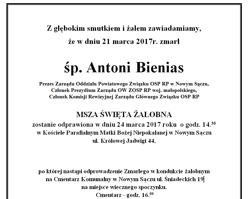 Pogrzeb śp. Antoniego Bieniasa, prezesa Zarządu Oddziału Powiatowego ZOSP RP