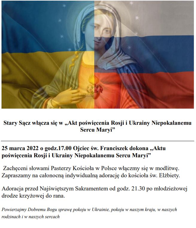 Stary Sącz włącza się w „Akt poświęcenia Rosji i Ukrainy Niepokalanemu Sercu Maryi”