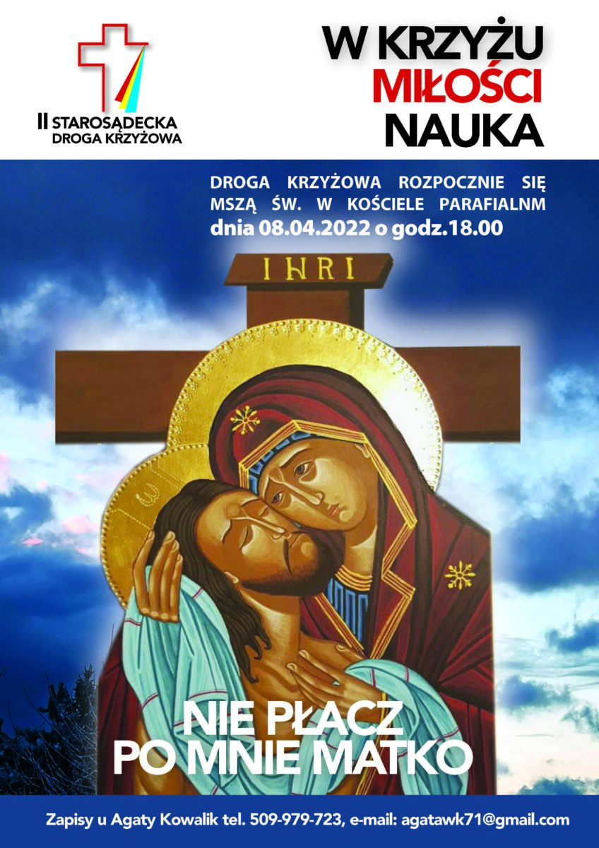 Parafia św. Elżbiety zaprasza 8.04.2022 na II Starosądecka Drogę Krzyżową. W tym roku 2 trasy niebieska 12 km oraz czerwona 22 km.Szczegóły tras poniżej: Trasa-NIEBIESKA.pdfTrasa-czerwona-1.pdf