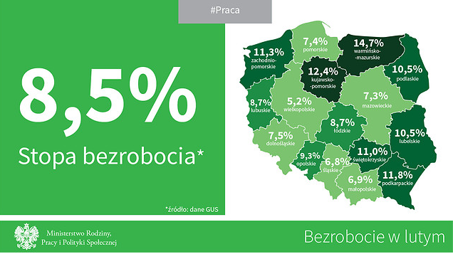 Główny Urząd Statystyczny potwierdził szacunki MRPiPS – bezrobocie w lutym br. wyniosło 8,5%, czyli o 0,1 pkt. proc. mniej niż miesiąc wcześniej. W końcu lutego br. liczba bezrobotnych zarejestrowanych w urzędach pracy wyniosła 1,38 mln i zmniejszyła się w porównaniu z poprzednim miesiącem – o 1% (tj. o 13,7 tys.), a w porównaniu do lutego […]