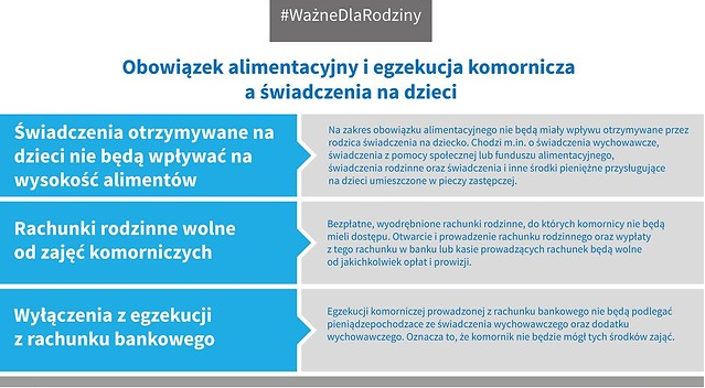 Świadczenia otrzymywane na dzieci nie będą wpływać na wysokość alimentów, nie zajmie ich też komornik, dla osób otrzymujących świadczenia niepodlegające egzekucji będą specjalne subkonta – przewiduje ustawa, którą we wtorek podpisał prezydent Andrzej Duda. Zmiany wejdą w życie po upływie 14 dni od ogłoszenia. Świadczenia otrzymywane na dzieci nie będą wpływać na wysokość alimentów. […]