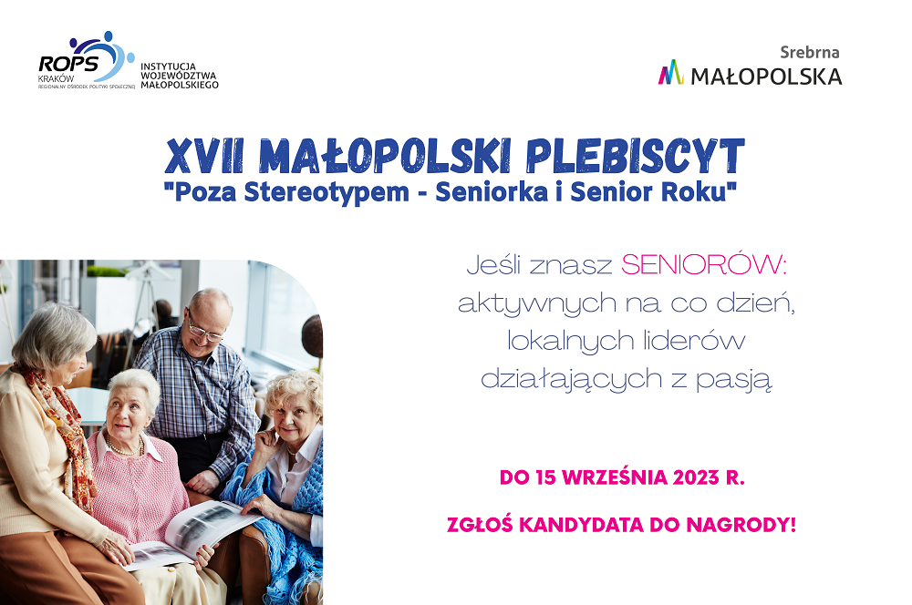 Ruszyła tegoroczna odsłona plebiscytu „Poza Stereotypem – Seniorka i Senior Roku”. W konkursie nagradzani są seniorzy z Małopolski wyróżniający się szczególną aktywnością i nieszablonową postawą, która inspiruje innych do działania. Jeśli znasz w swoim otoczeniu seniorów działających z pasją, którzy bezinteresownie angażują się w pomoc innym, nie czekaj i już dziś zgłoś ich do nagrody – może dzięki Tobie dowie się o nich cała […]