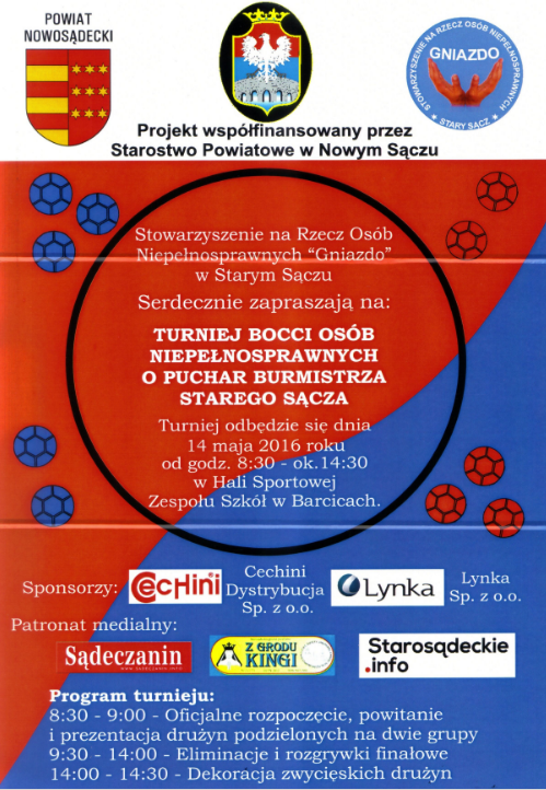 Już w sobotę (14 maja) odbędzie się jubileuszowy X Turniej Bocci Osób Niepełnosprawnych o puchar burmistrza Starego Sącza. Gościnne progi Zespołu Szkół w Barcicach staną się areną niezwykłych zmagań niepełnosprawnych sportowców. Serdecznie zapraszamy do wspólnego kibicowania. Startujemy o godzinie 8:30 Starosądeckie.info patronem medialnym Turnieju Bocci