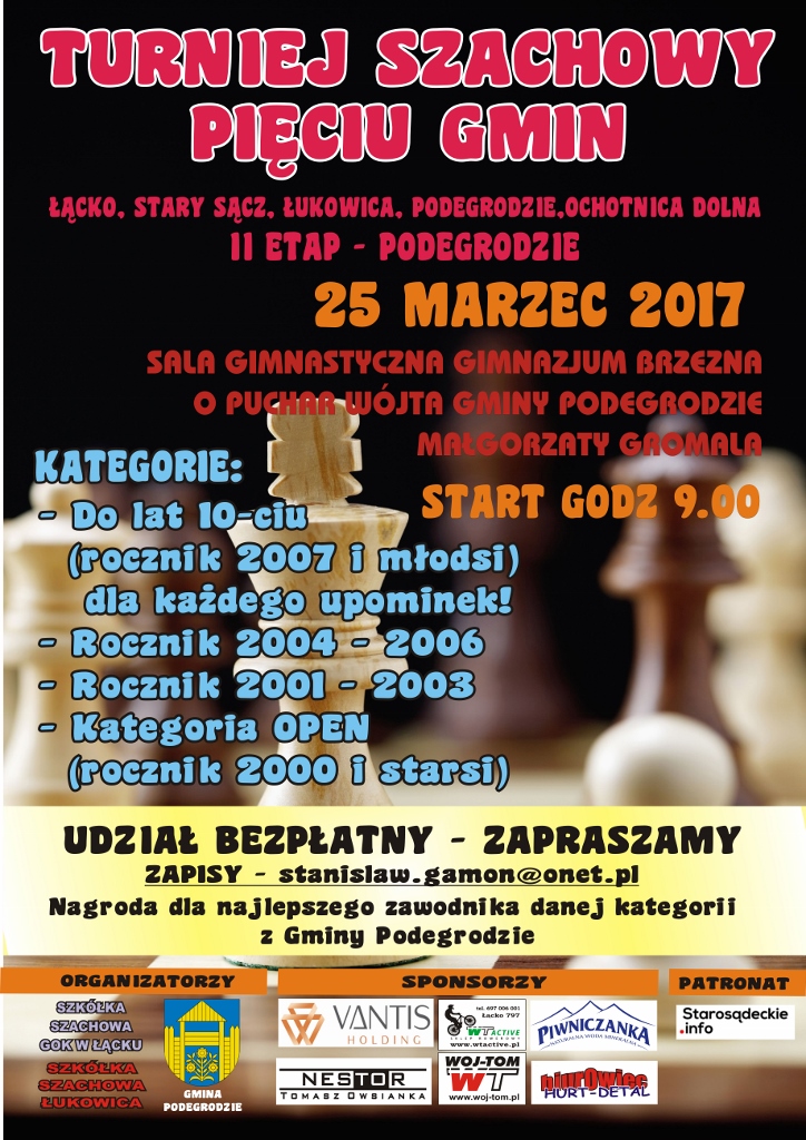 Turniej Szachowy Pięciu Gmin. II Etap w Podegrodziu!
