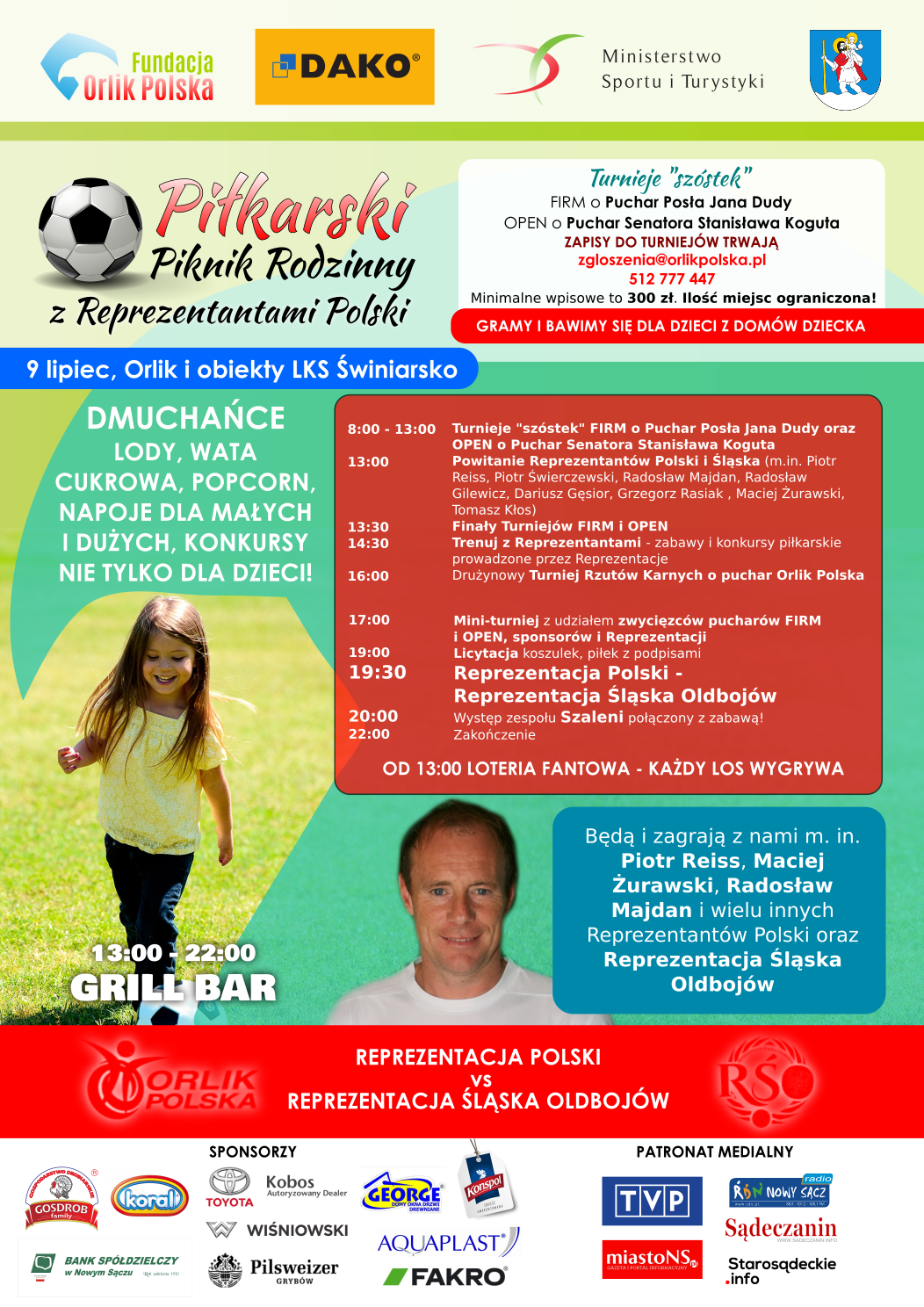 Harmonogram Piłkarskiego Pikniku Rodzinnego z Reprezentantami Polski w Świniarsku- 9 lipca: Od samego rana będzie się działo. Już o godzinie 8:00 rozpoczną się mecze Turnieju FIRM o Puchar Posła Jana Dudy oraz OPEN o Puchar Senatora Stanisława Koguta. Tuż po godzinie 13:00 nastąpi oficjalne rozpoczęcie pikniku rodzinnego. Zaraz po tym nastąpi powitanie naszych gwiazd z […]