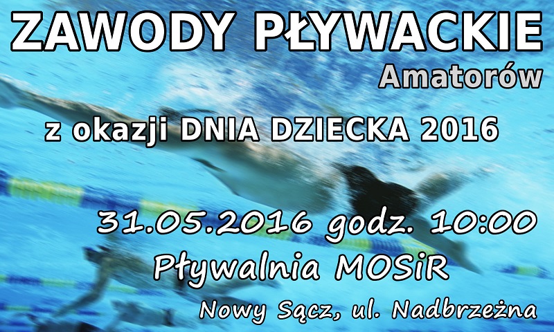 Zawody Pływackie z okazji Dnia Dziecka 2016 31 maja 2016 (wtorek) godz.10:00 – Kryta Pływalnia MOSiR REGULAMIN Mistrzostwa Nowego Sącza AMATORÓW„Zawody Pływackie z okazji Dnia Dziecka 2016” CEL: popularyzacja i doskonalenie pływania jako jednej z form aktywnego wypoczynku, umożliwienie udziału dzieciom w imprezach rekreacyjno – sportowych ORGANIZATOR: Miejski Ośrodek Sportu i Rekreacji w Nowym Sączu Współorganizator: […]
