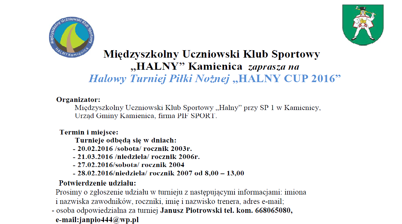 „HALNY” Kamienica zaprasza na Halowy Turniej Piłki Nożnej