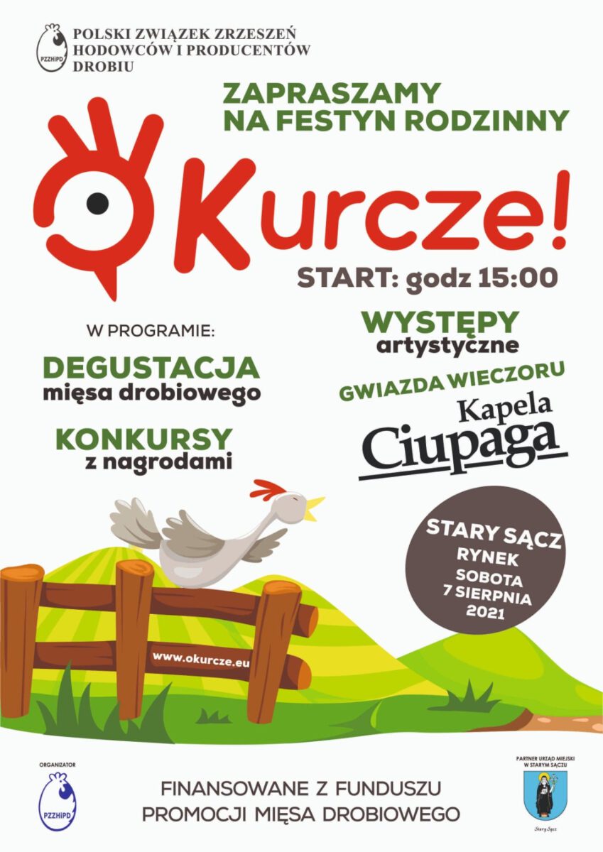 7 sierpnia na starosądeckim Rynku odbędzie się festyn rodzinny zorganizowany przez Polski Związek Zrzeszeń Hodowców i Producentów Drobiu. Na finał zagra kapela CIUPAGA. PROGRAM:15:00 Oficjalne otwarcie imprezy15:30 Koncert Kapeli Góralski Przystanek16:30 Konkursy z nagrodami16:45 Muzyka na żywo17:15 Koncert Zespołu „Kameneon”18:15 Koncert Zespołu „Kapela Ciupaga”19:30 Zakończenie festynu