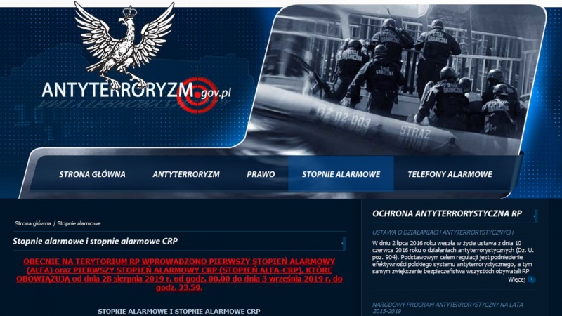 Stopień alarmowy ALFA w całej Polsce