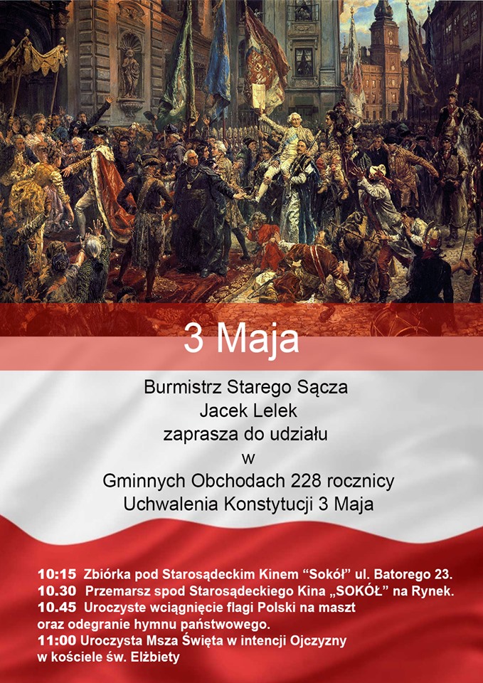 Święto Konstytucji 3 Maja to ważny dzień w kalendarzu polskich świąt narodowych. Waga święta została podkreślona m.in. uczynieniem tego dnia wolnym od pracy. W kraju organizuje się szereg uroczystości i pochodów, które mają przypomnieć, jak istotnym wydarzeniem było uchwalenie tejże Konstytucji 3 maja 1791 roku. Przemarszem w strugach deszczu spod starosądeckiego Kina Sokół na Rynek, […]