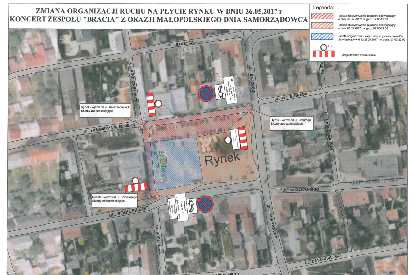 W związku z koncertem zespołu Bracia, który odbędzie się w ramach obchodów Małopolskiego Dnia Samorządowca w dniu 26.05.2017 r. (piątek) w Starym Sączu wprowadzona zostanie zmiana organizacji ruchu. W godzinach 17:00-22:00 z ruchu pojazdów zostaną wyłączone: płyta rynku, ulice przylegające do płyty rynku, ul. Jana Pawła II (od ul. Daszyńskiego do Rynku), ul. Batorego (od […]