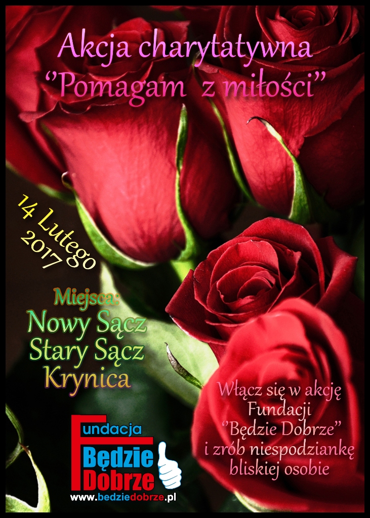 Już po raz kolejny starosądecka Fundacja „Będzie Dobrze” organizuje swoją walentynkową akcję – „Pomagam z miłości”. – Akcja ma na celu nie tylko pozyskanie funduszy dla podopiecznych. Przede wszystkim chcemy dać coś od siebie dla wszystkich zakochanych i nie tylko. Bo przecież walentynki to święto przyjaźni i miłości. Dlatego chcemy ofiarować ręcznie robione róże, pierniki, […]