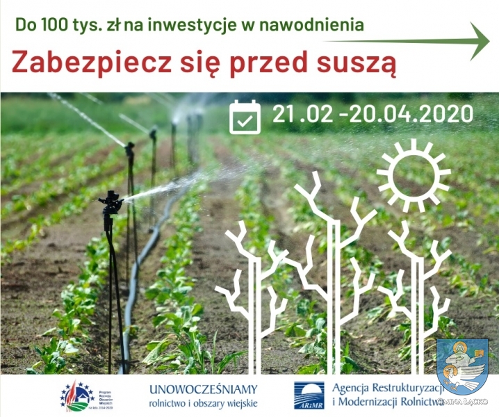 Od 21 lutego do 20 kwietnia 2020 r. rolnicy, którzy chcą zabezpieczyć swoje uprawy przed skutkami suszy, mogą ubiegać się w ARiMR o dotację na inwestycje w nawadnianie gospodarstwa rolnego. O pomoc, która realizowana jest w ramach działania „Modernizacja gospodarstw rolnych” z PROW 2014-2020, może wystąpić rolnik posiadający gospodarstwo o powierzchni co najmniej 1 […]