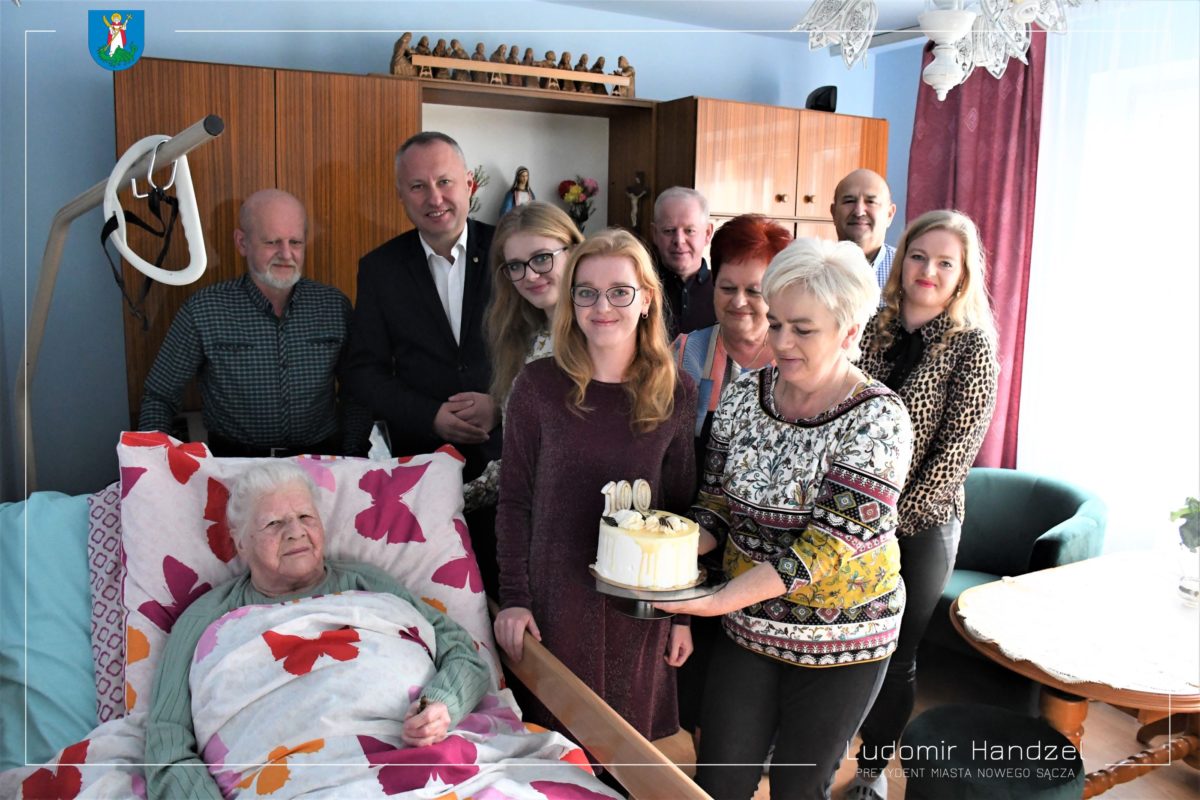 Pani Maria Uszko skończyła 100 lat. Z tej okazji życzenia i gratulacje złożył jubilatce prezydent Ludomir Handzel, który życzył jej zdrowia, pomyślności i dobrej kondycji jeszcze przez długie lata. Pani Maria otrzymała listy gratulacyjne od Prezesa Rady Ministrów i Wojewody Małopolskiego oraz kwiaty i urodzinowy upominek od władz miasta. UM NS