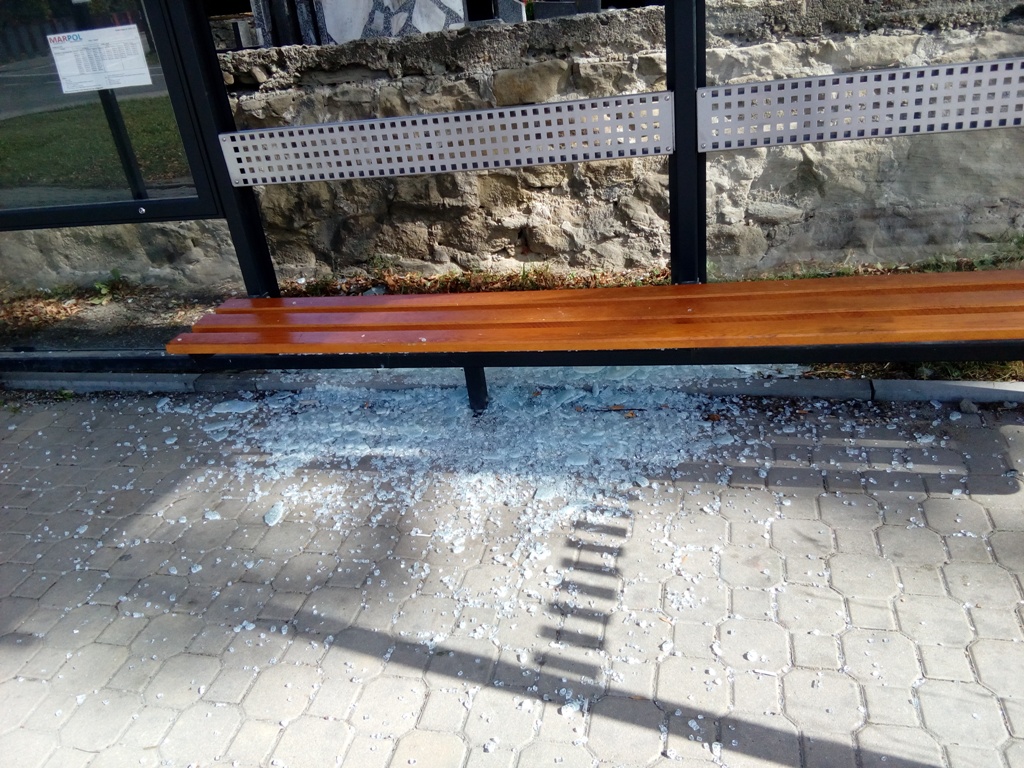 Barcice. Wandale zbili szybę na przystanku autobusowym